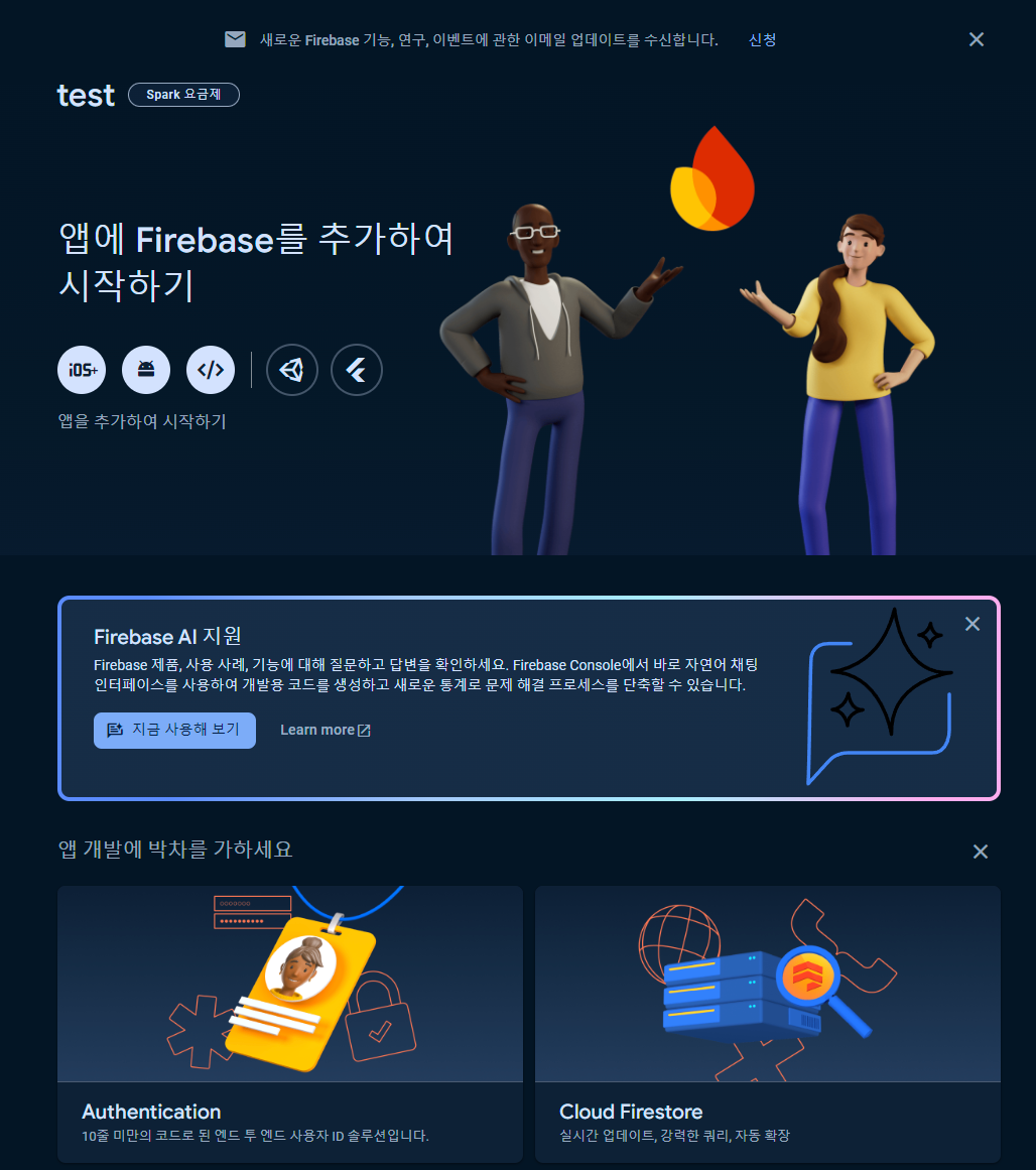 파이어베이스 프로젝트가 생성된 것을 확인할 수 있다.