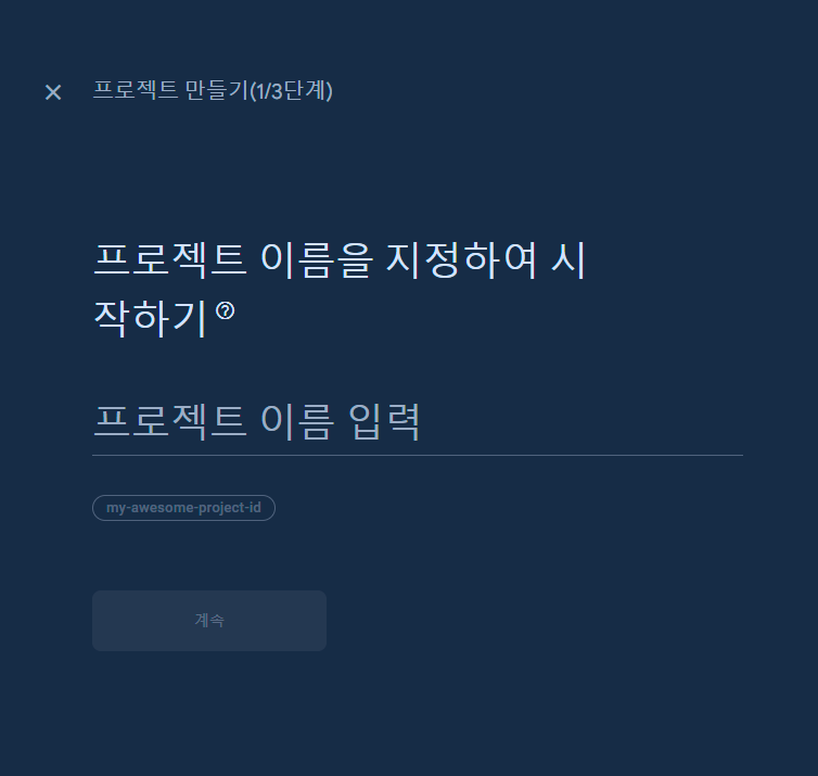 프로젝트 추가를 누르면 위와 같은 화면이 나온다. 이름을 지정해주자.
