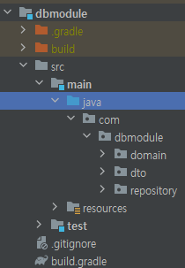 db 모듈의 디렉토리이다. 아키텍처에서 언급한 dto, 도메인, 리포지토리가 포함되어 있다.