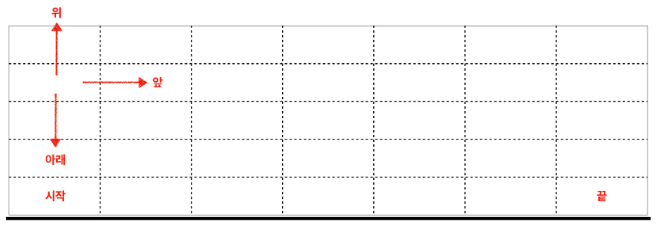 <그림 1> 시작과 끝 칸 및 가능한 이동 방향