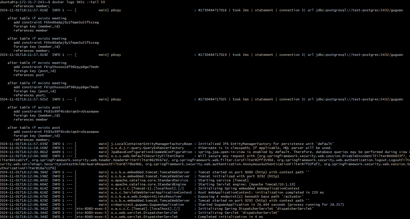 docker logs 를 입력하면 로그를 확인할 수 있다.