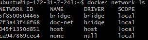 doc-net라는 이름의 네트워크를 하나 만들어주었다. 이제 컨테이너를 실행시킬 때 마다 해당 네트워크를 등록해 줄 것이다.
