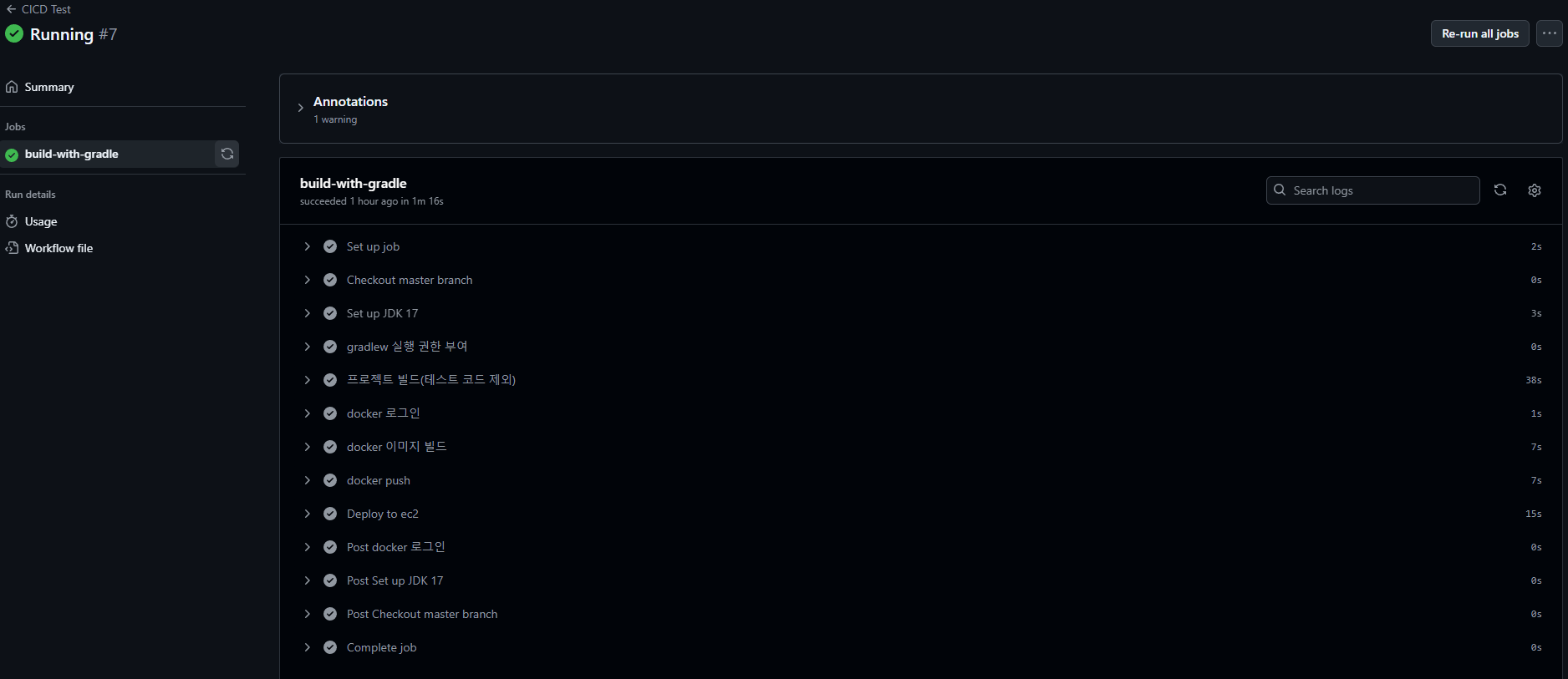 CI/CD에 성공한 것을 확인할 수 있었다.
